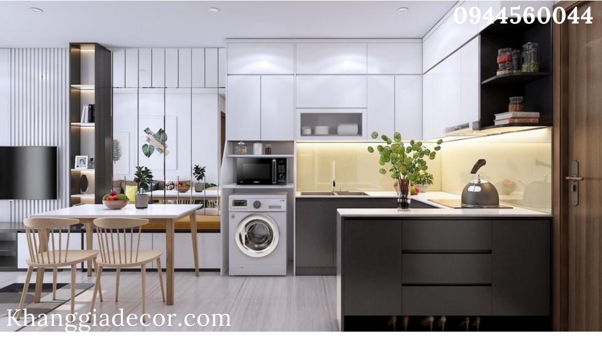 Thiết kế thi công nội thất tủ bếp theo phong cách hiện đại dành cho căn hộ mang đến một không gian phòng bếp thật đẳng cấp mang đến cho gia đình bạn sự sang trọng,  thổi hồn vào từng món đồ nội thất trở nên hiện đại, tiện nghi khi sử dụng. Hãy liên hệ với Khang Gia Decor, bạn sẽ có một không gian bếp như ý, tiện nghi hơn với cách bố trí đầy đủ mọi công năng.